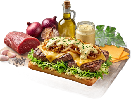 Sandwich de Lomo de Res y Cebollas Caramelizadas